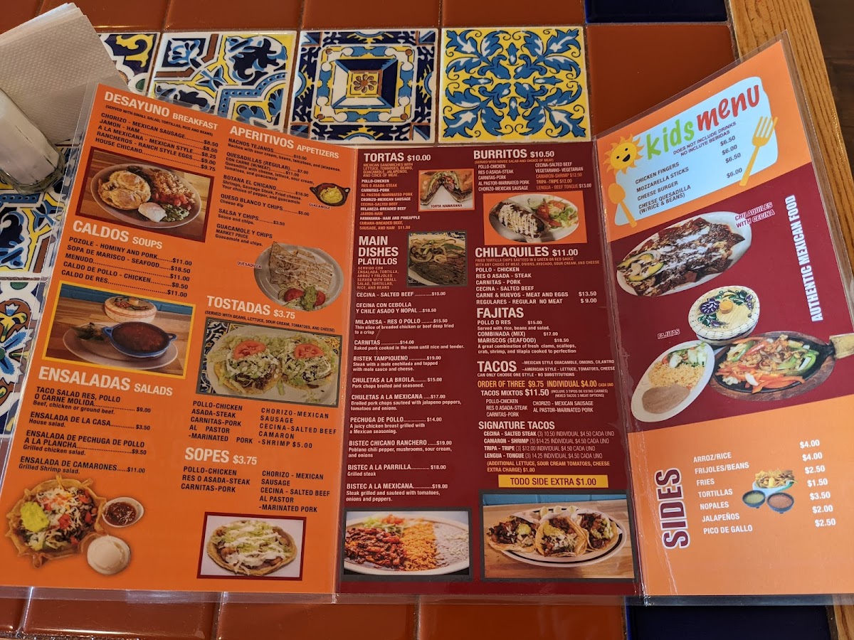 El Chicano secret sauce, avocado, onions, cilantro and served with cocktails.